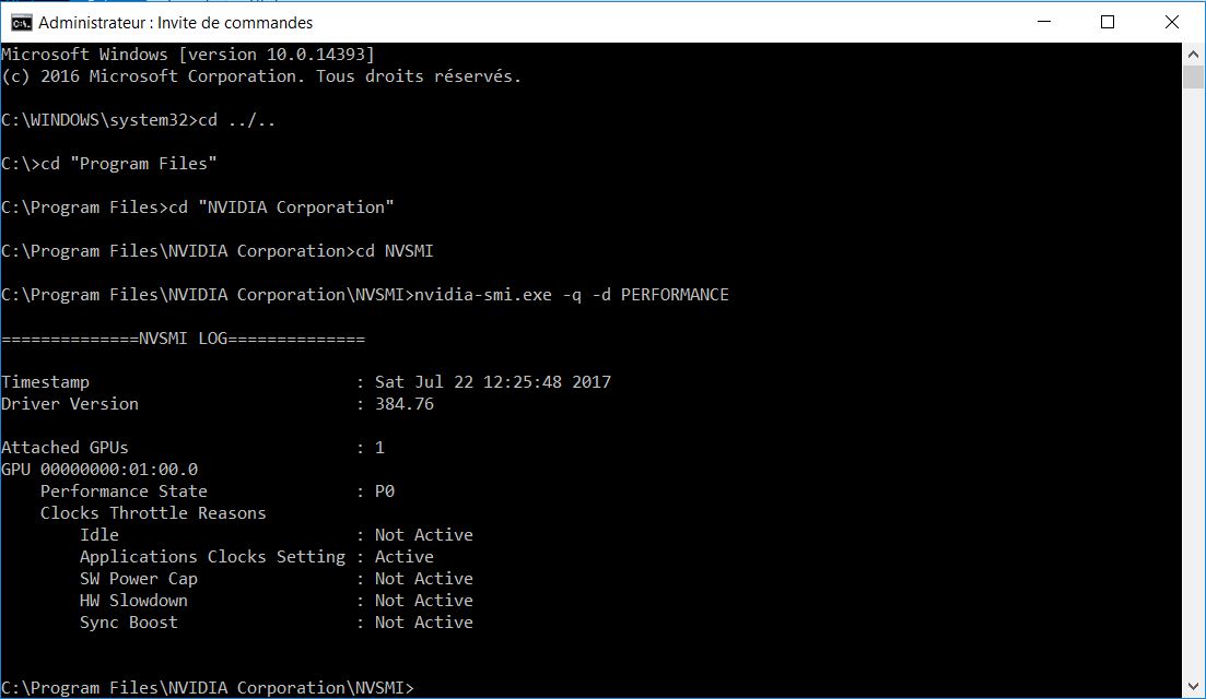 Если вы теперь проверяете с помощью 'nvidia-smi.exe -q -d PERFORMANCE', вы увидите, что ваша карта находится в состоянии P0.