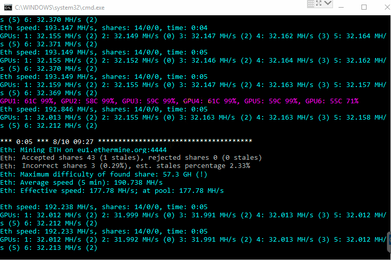 Мы также обнаружили, что Claymore более стабилен, прост в использовании, показывает устаревшие шары и т. д. Этим майнером все очень довольны и его рекомендуют почти все пулы.