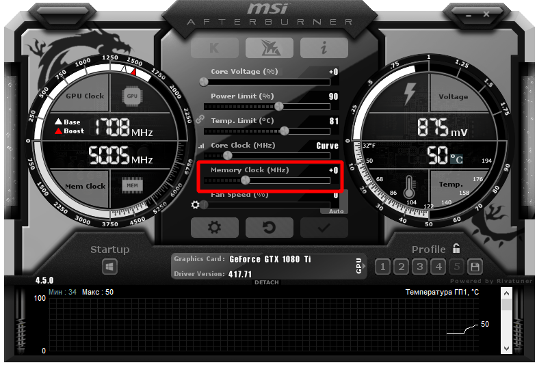 Откройте MSI Afterburner или же другое приложение, в котором вы рзагоняли карточку и снизьте Memory Clock (MHz) на 10 пунктов. В случае если ошибка повторится, будет необходимо снижать разгон ещё сильнее до тех пор, пока же карта не начнет стабильно работать и приносить доход.