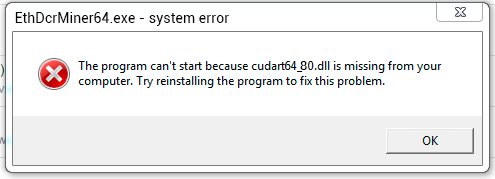 Это может быть не обязательно cudart64_80.dll, а любая другая .dll библиотека, которая отсутствует в системе.
